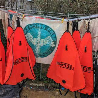 The first dive proved quite challenging, as the recent bad weather has really churned up the visibility. During the first dive, ghost gear comprising monofilament netting and ropes was recovered.